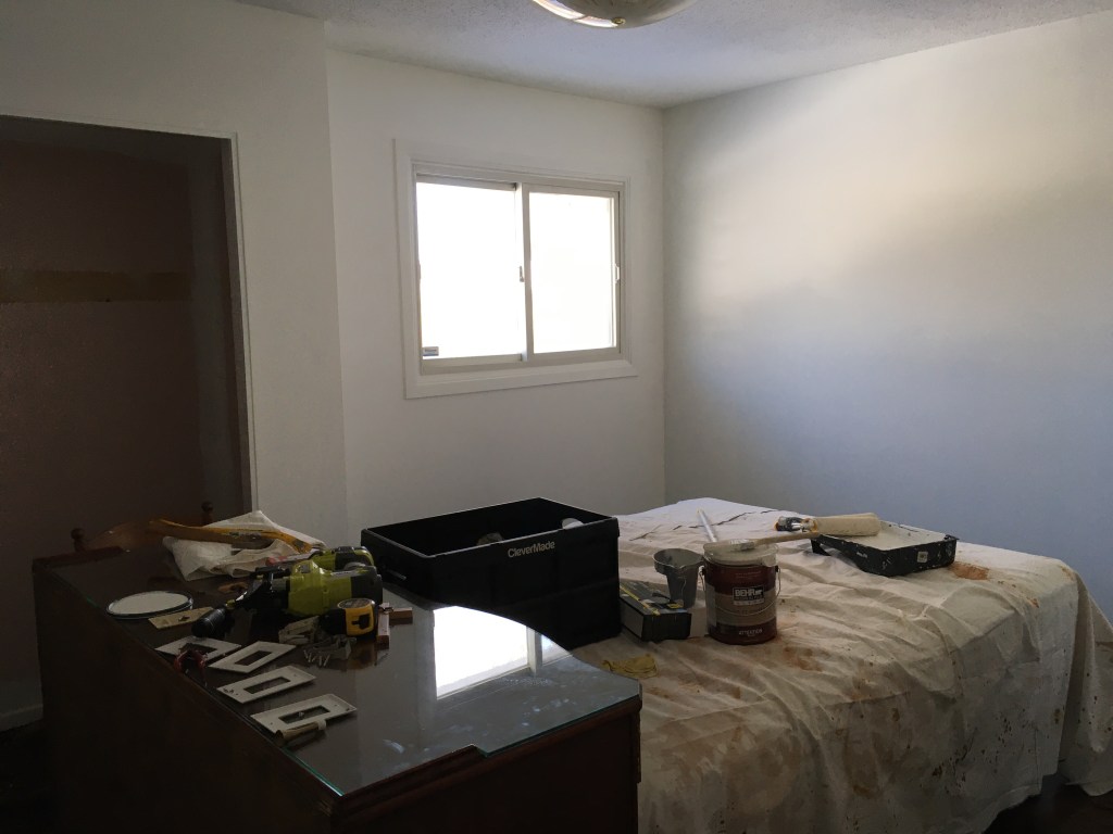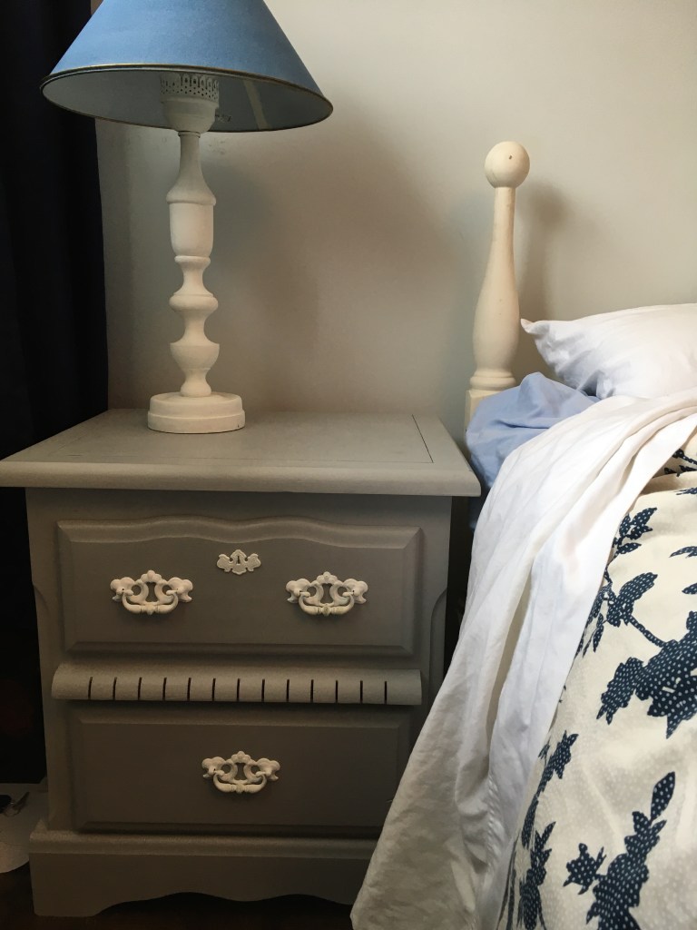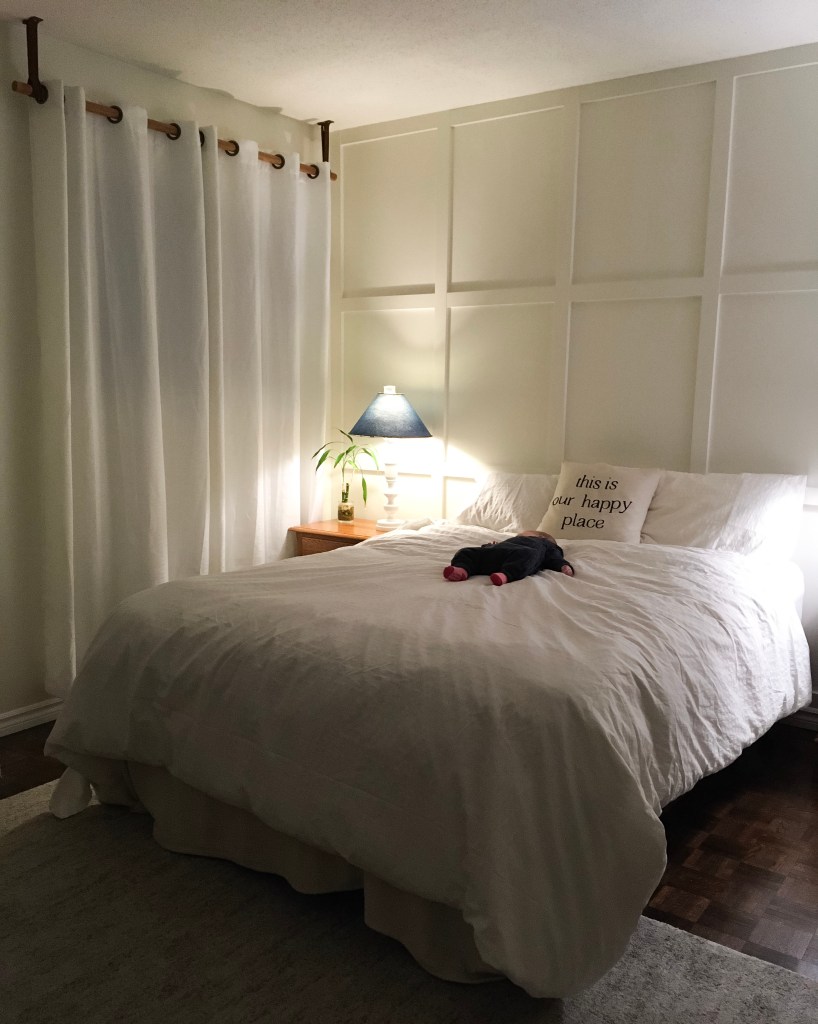 I was able to thrift some side tables, new bedding, and curtains through Facebook Marketplace. I also traded a friend for a headboard but I didn’t like the look of it in the end. Hopefully I’ll be able to use it in another room in the house.