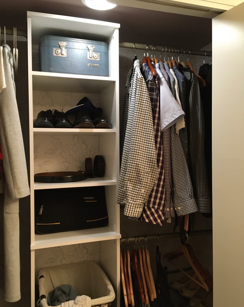 At least I still get to see the beautiful pattern when I decide what to wear. I highly recommend both the wallpaper and the closet organizer. Those are two of my 5 Affordable Ways to Improve Your Bedroom Closet.