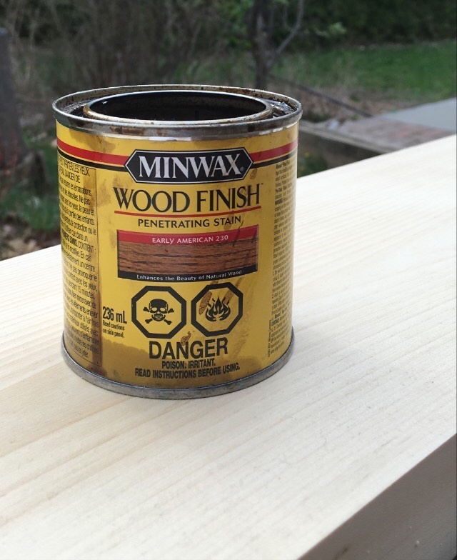 Another thing I started while waiting for my supplies was making the floating shelves. A dear friend of ours works at a local lumber mill and he personally milled some 2″x8″x8′ pine boards for me. We measured and cut them down to size, sanded, and stained them in Minwax Early American stain.