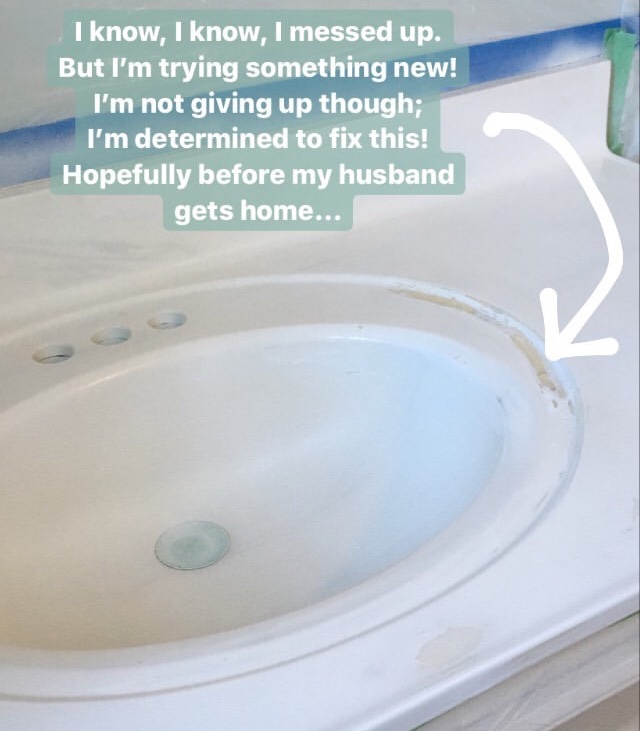 The next morning I sanded the bubbles and rough spots down and went for round 2. Most of it looked great but in the lip of the sink there was pooling and I panicked again and touched it messing it up even more. Will I ever learn?