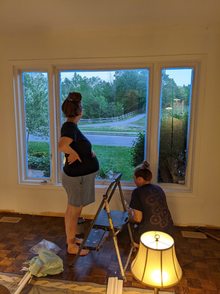 Day 3 of our long weekend painting party was pretty breezy. Dan installed the baseboards we had leftover in the basement. We didn’t have enough for the whole room so that’s another item added to the shopping list and task on the project list. We put the windows, now with black metal frames, back in and returned the furniture from the dining room.