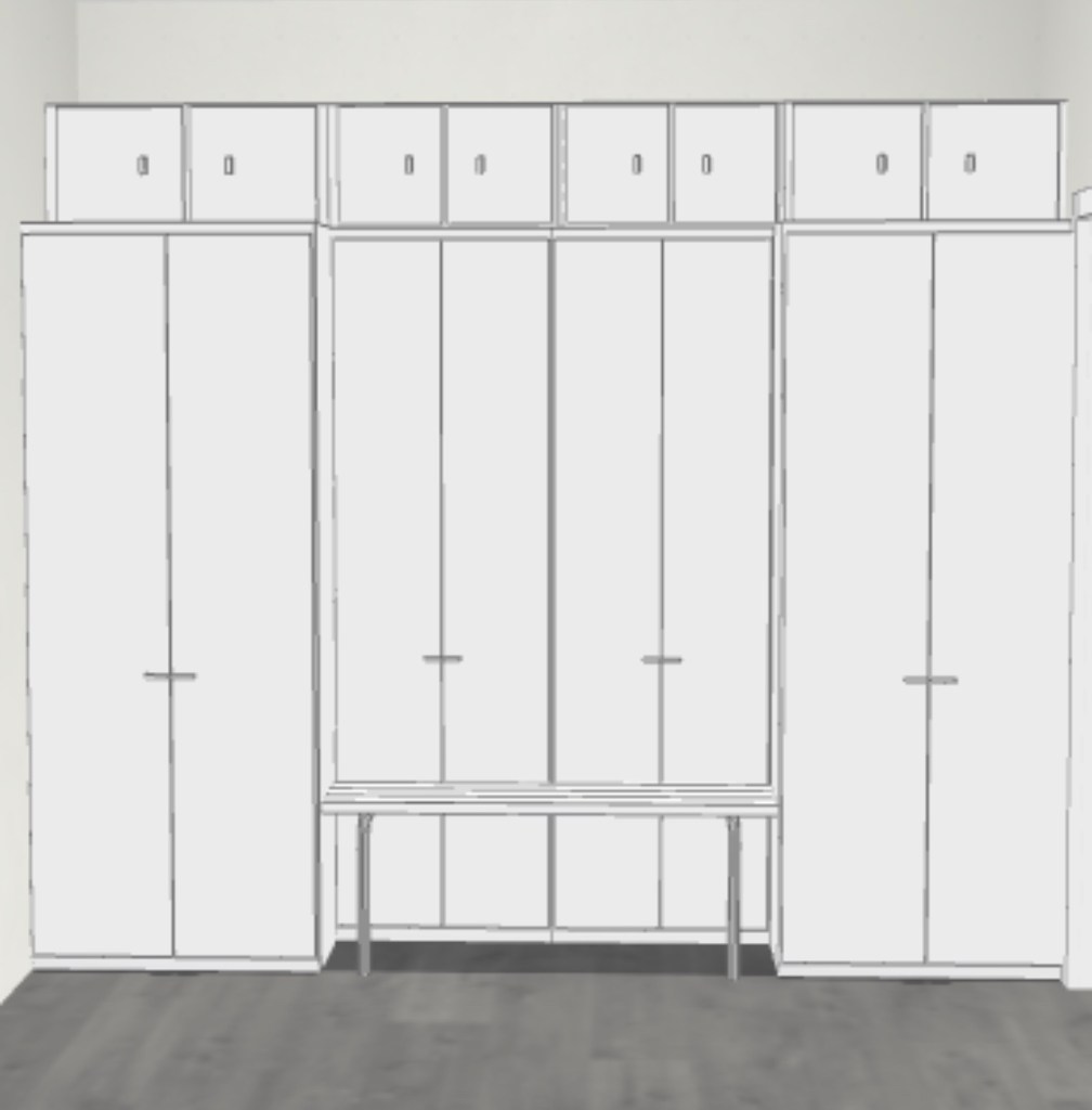 Even though both of these designs look fine, I knew that the cabinets with the ducts in them would not be as functional as I need them to be to hide backpacks, hats, coats, etc.
